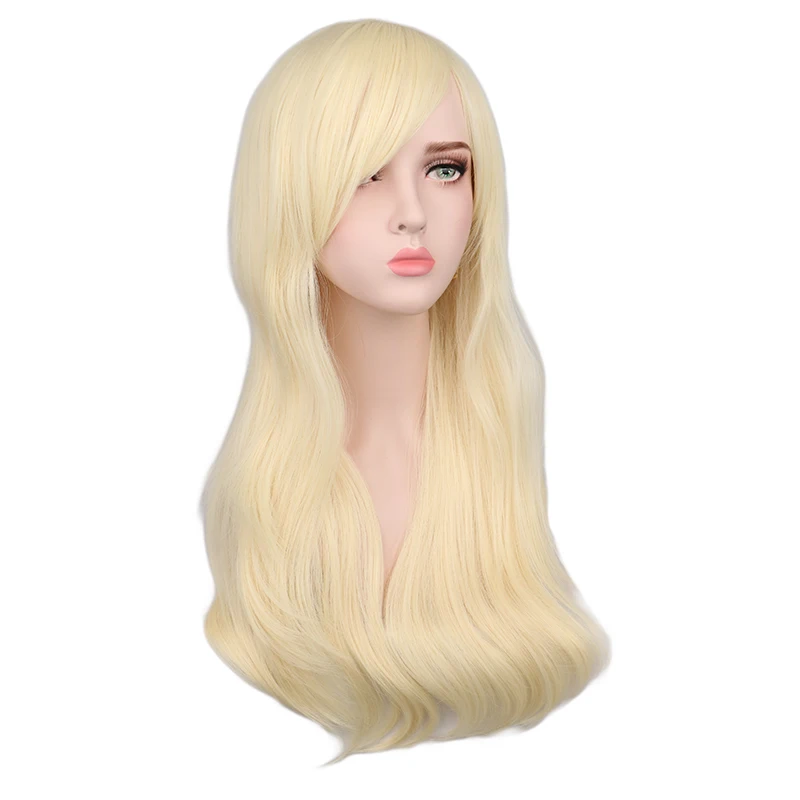 QQXCAIW Women Long Wavy Cosplay Wig Red Rose Pink Black Blue Sliver Gray Brown 70 Cm Temperature Sy