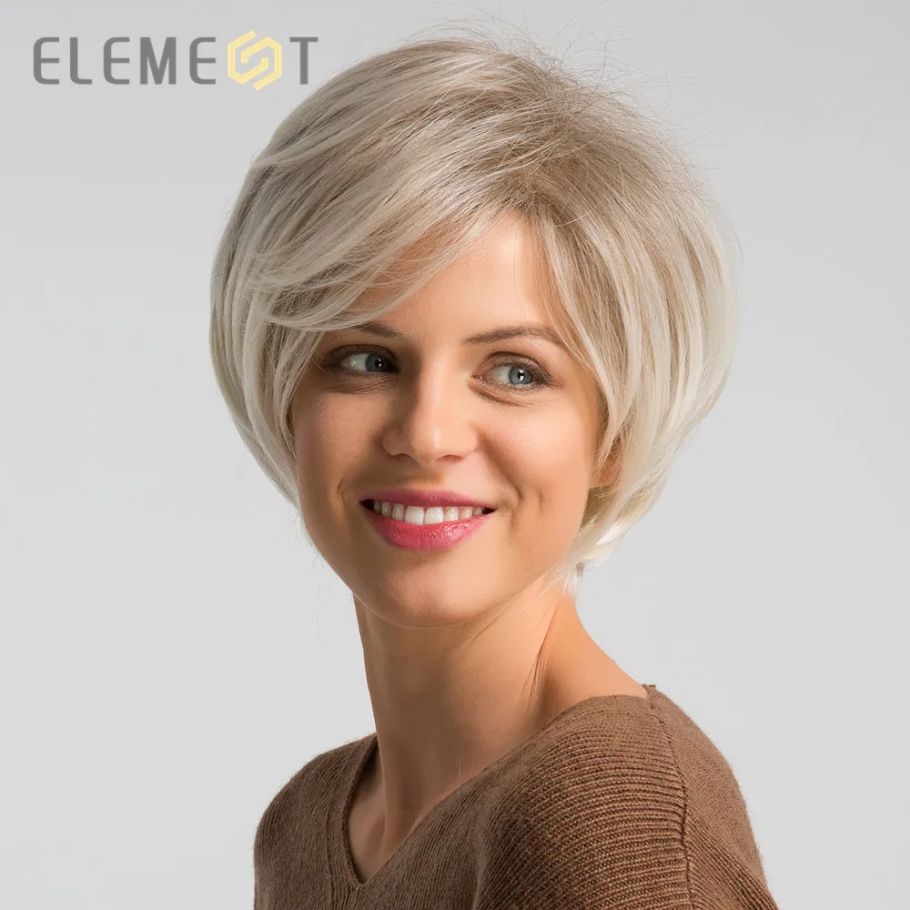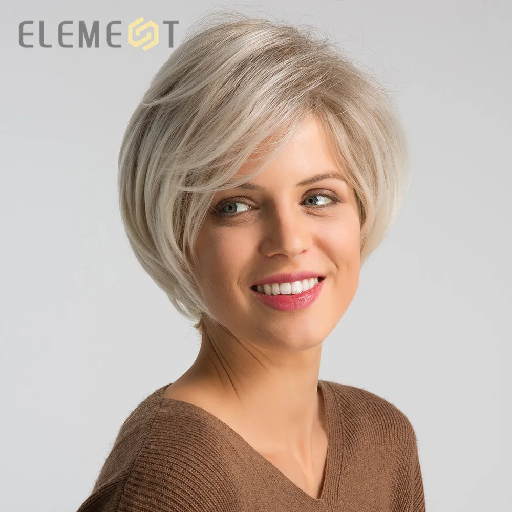 REVIEW TOP SELLER ELEMENT 6 Inch Short Synthetic Wig for Women Left Side Parting Ombre Gray to White High Temperature