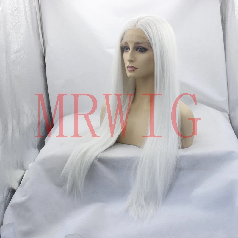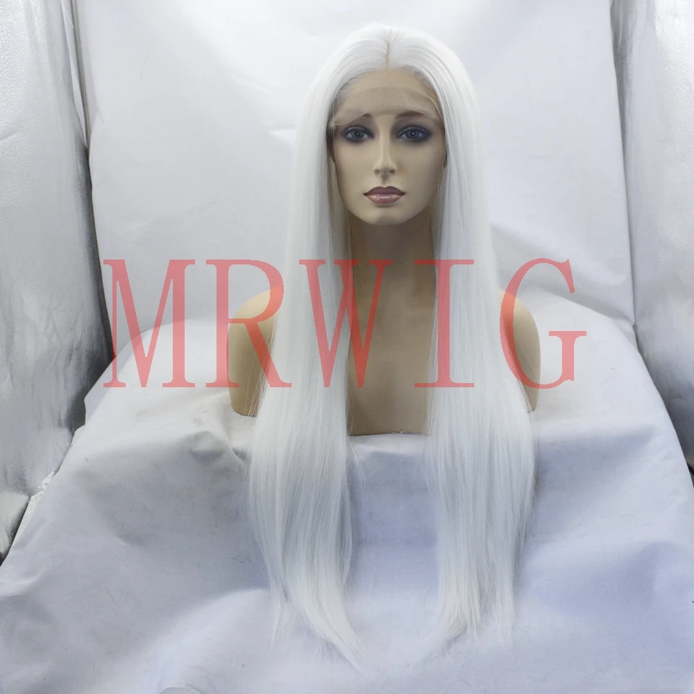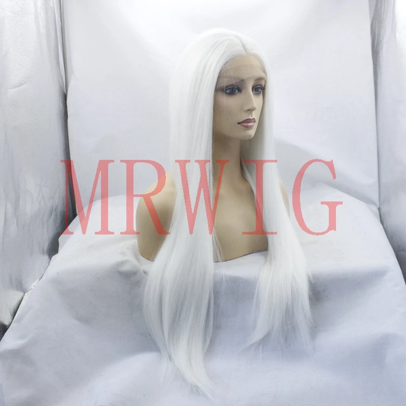TOP Real Picture Glueless Synthetic Lace Front Wigs Middle Part White Color Long Straight Half Hand Tie