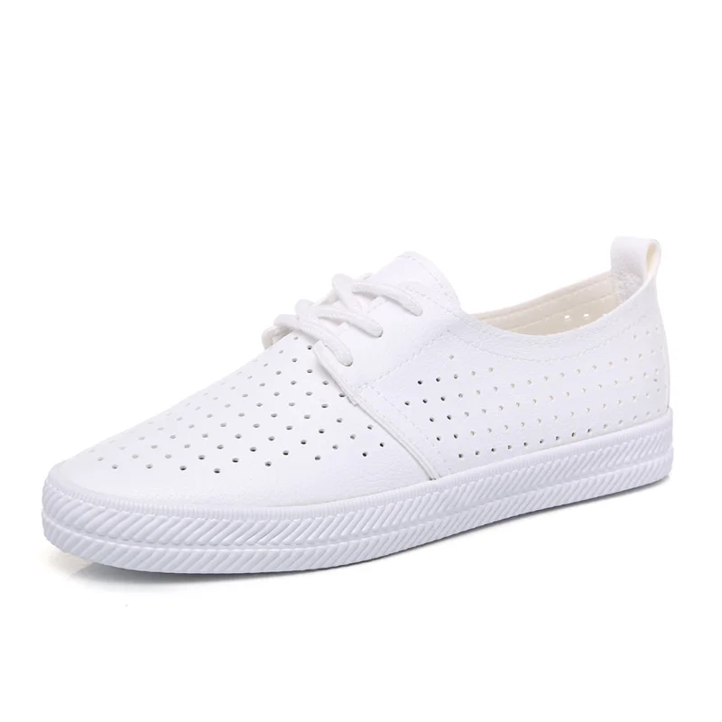 Women White Shoes Sneakers Summer 2019 Spring Breathable Holes Solid Color Female Black Shoes Leath