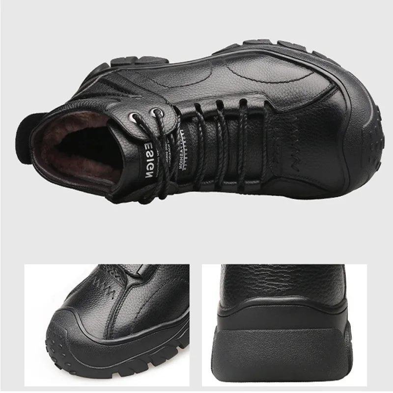 Merkmak Winter Booties Business Casual Leather Shoes Plus Velvet Warm Leather Ankle Booties Fashion