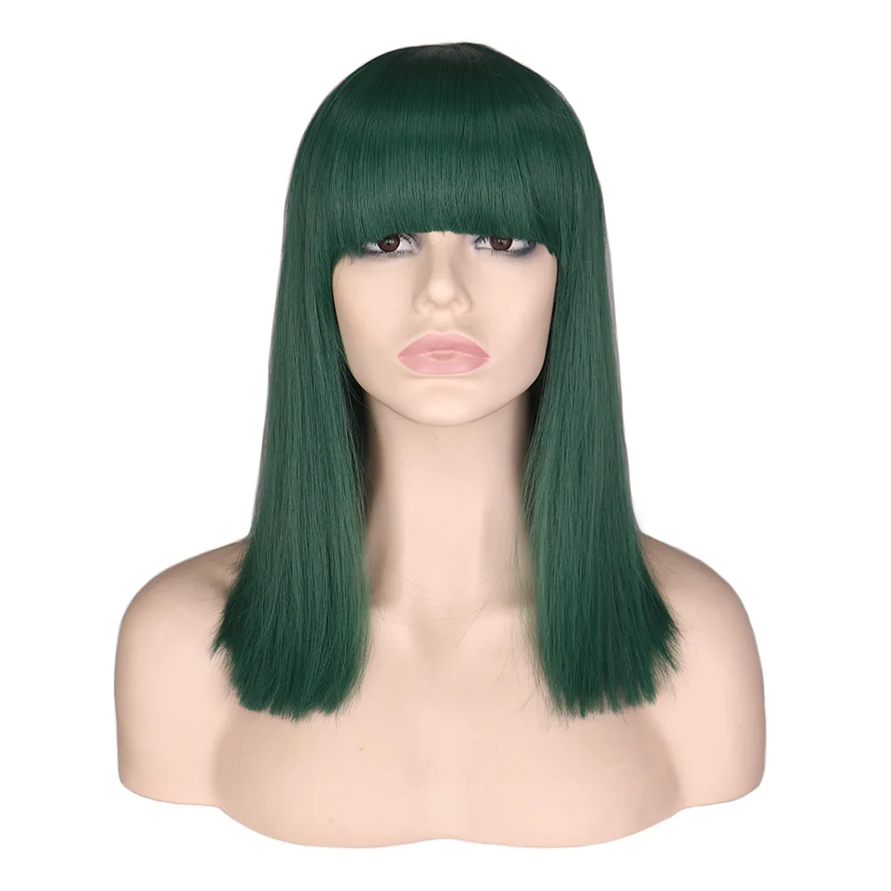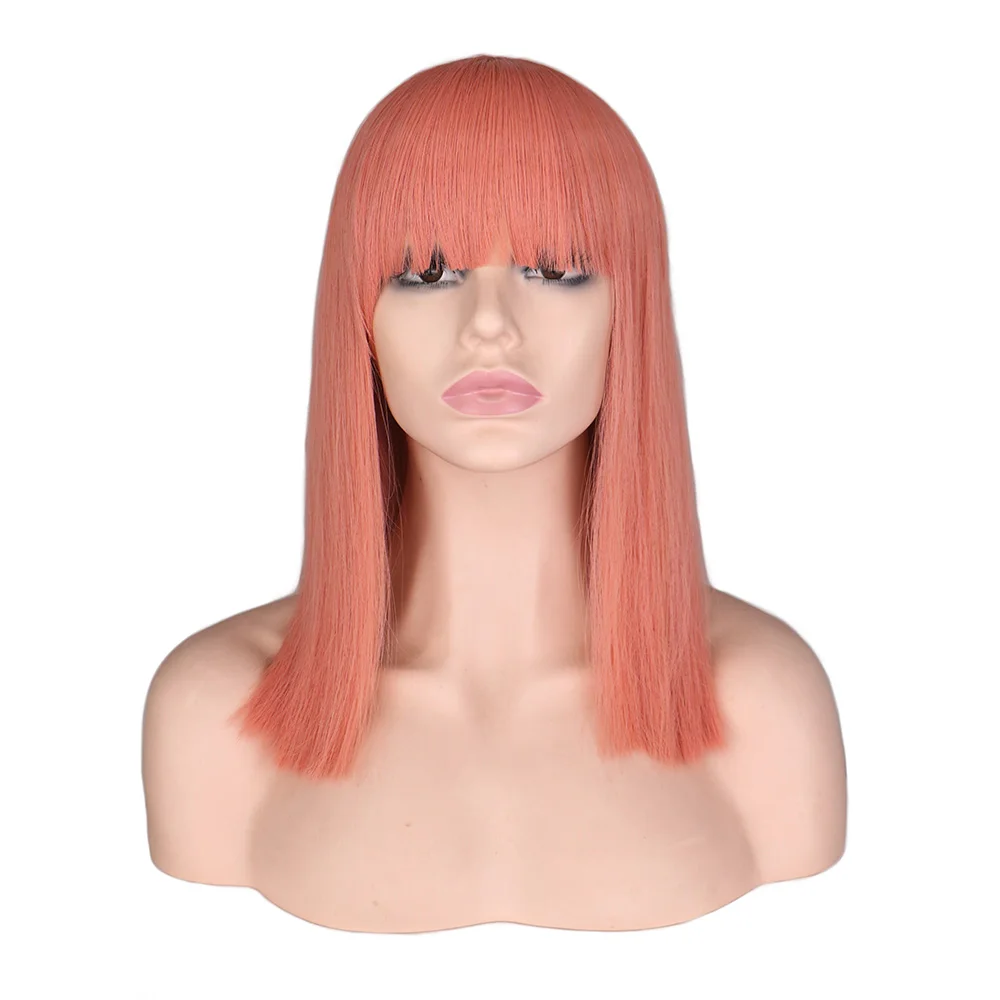 QQXCAIW Short Straight Cosplay Wig For Party Costume Red Blonde Blue Green Pink High Temperature Fi
