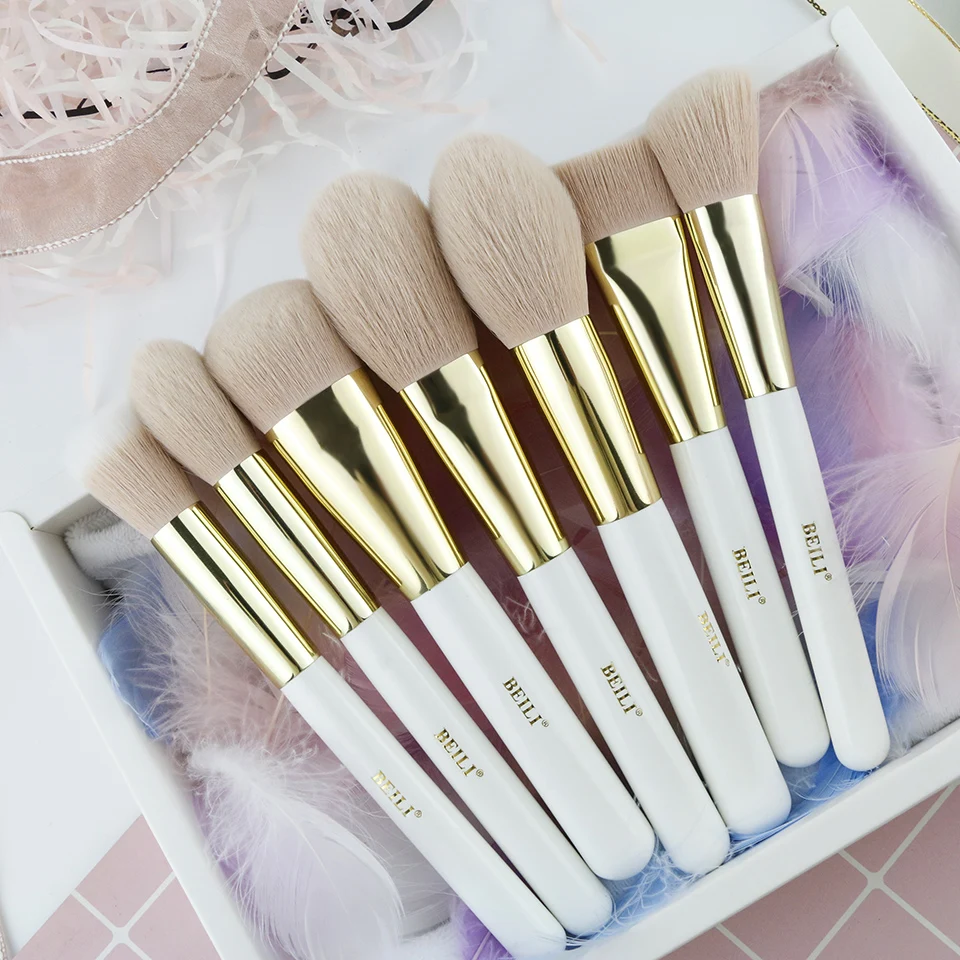 ORIGINAL BEILI Pearl White Gold Professional Makeup Brushes Pink Synthetic Hair Cruelty free Makeup brush se