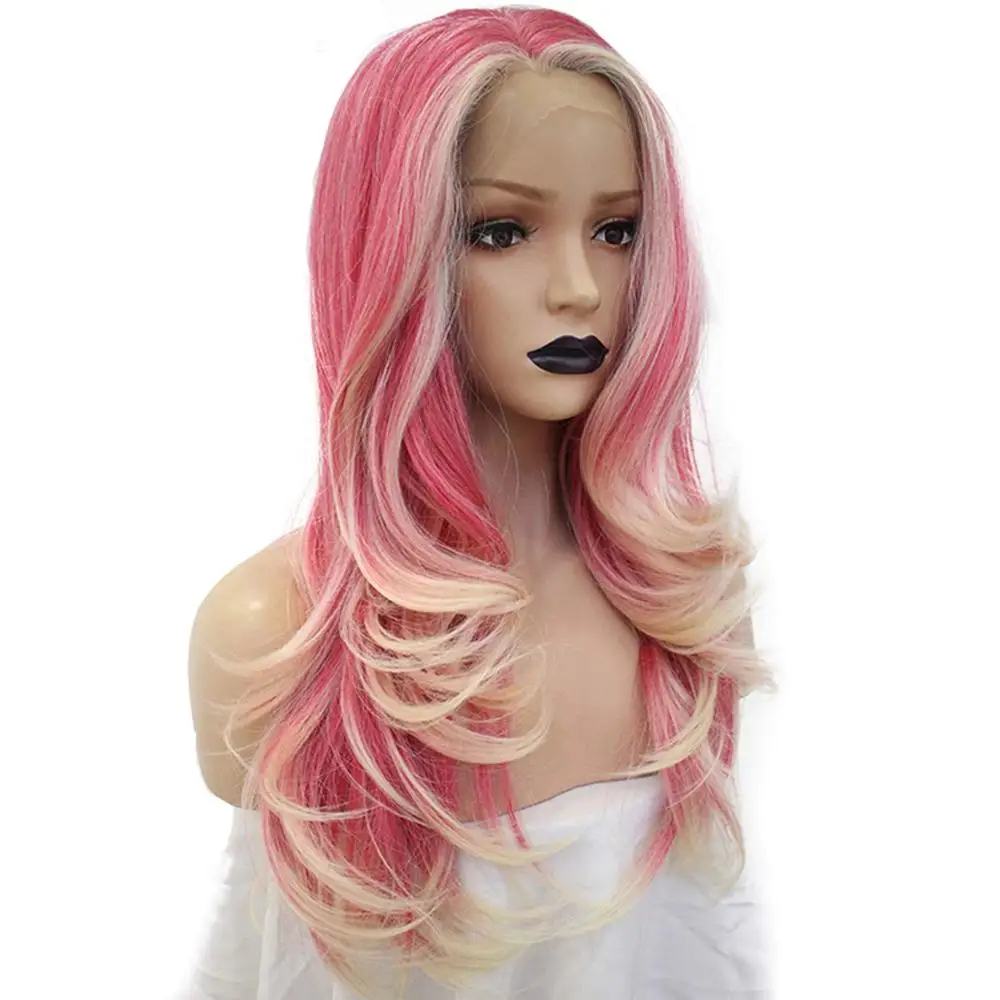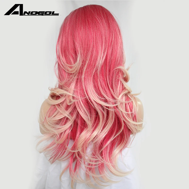 Best Quality Anogol Pink Blonde Ombre Synthetic Fiber Lace Front Wigs with Free Part Natural Wave Blond Wig Long