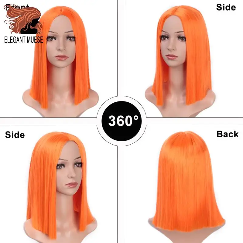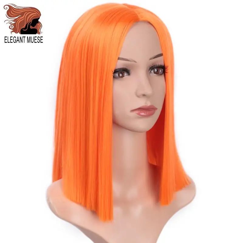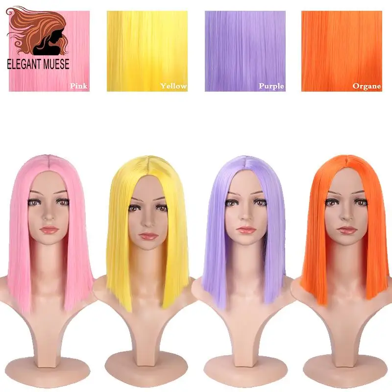 HOT Sale ELEGANT MUSES Bob Synthetic Wigs Short Straight Purple Yellow Orange Pink For Women 12 Inch Middle