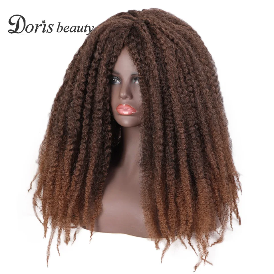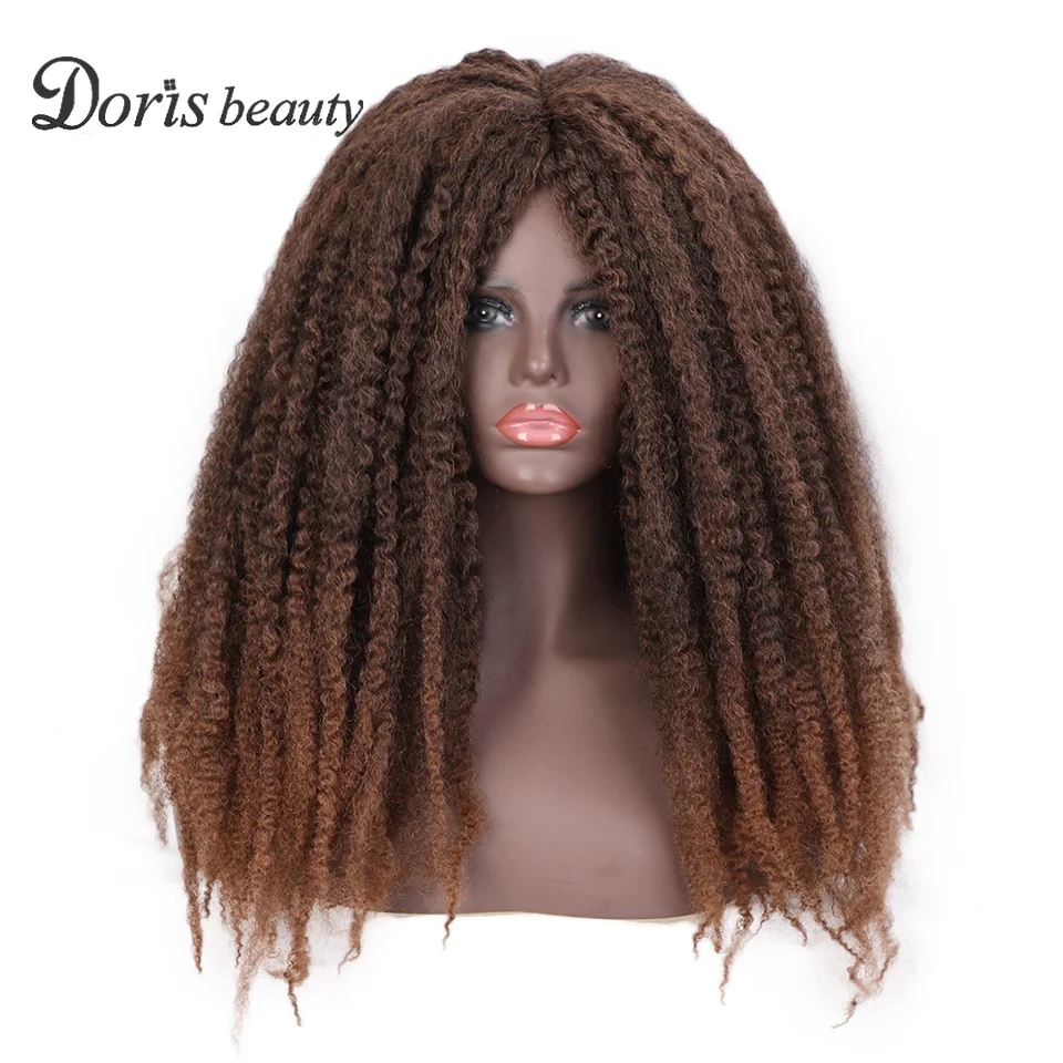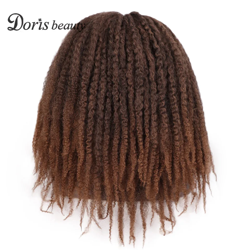 Doris beauty Synthetic Dreadlock Marley Braids Ombre Braiding Hair Wig for Women Afor Kinky Curly W