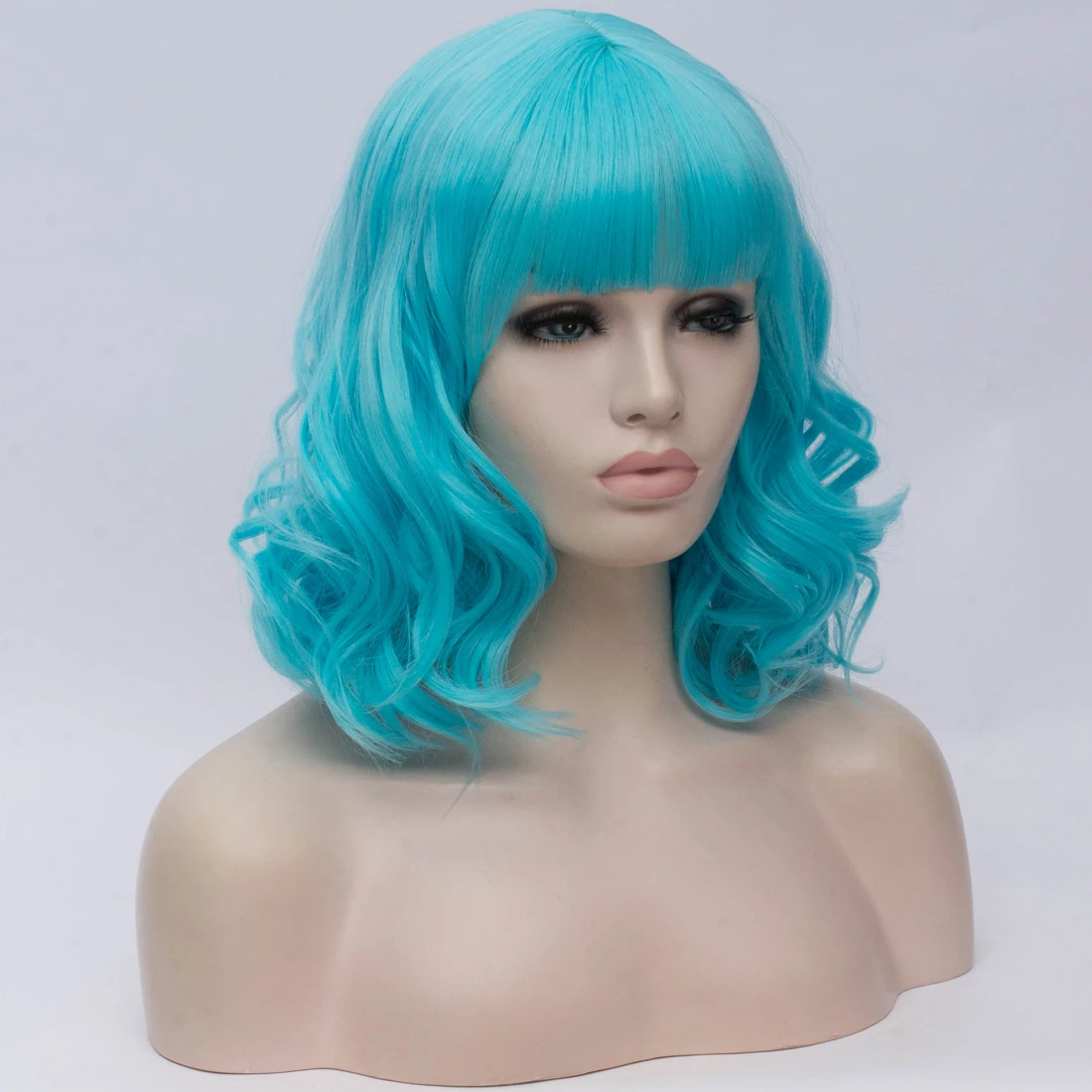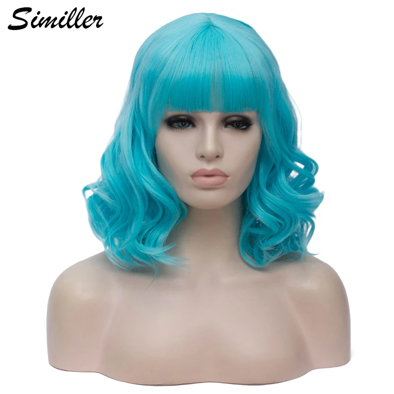 BEST SELLER Similler High Temperature Fiber Short Curly Synthetic Hair Wigs for Women Sky Blue Black White Gree