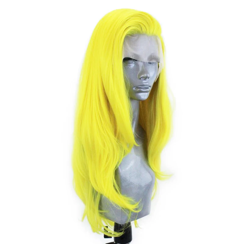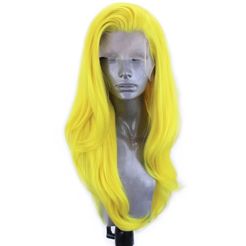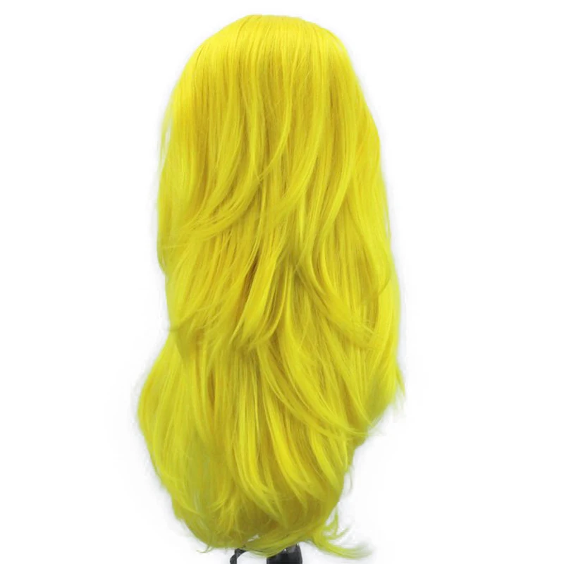 RONGDUOYI Natural Wave Yellow Free Part Long Wavy Wig High Temperature Fiber Synthetic Lace Front H